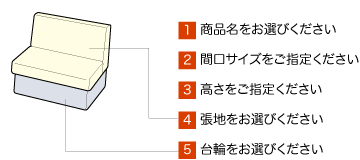 張り地は、ファブリック・レザーのランクからお選びください。お部屋のイメージもしくは、お持ちの家具に合わせてご自由にお選びいただけます。 ※FABRICS&LEATHERバナーをクリックしていただくと張り地のサンプルがご覧いただけます。